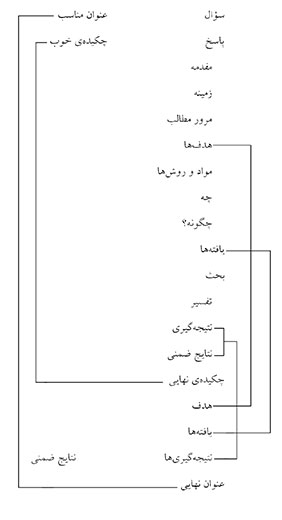 الگوی رایج در ارائهی مقالات و رسالات پژوهشی در نمودار (الف) نشان داده شده است.